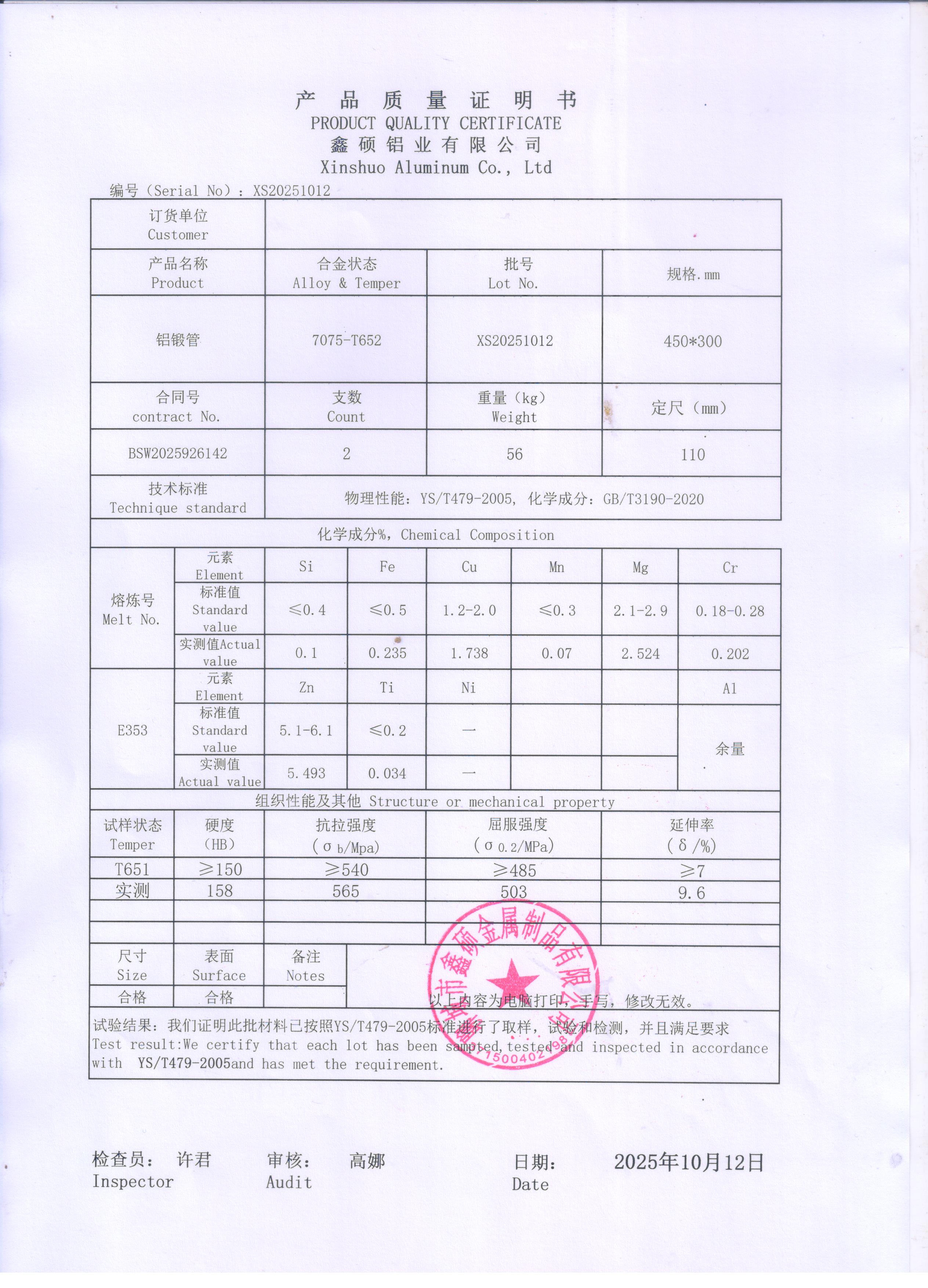材料標(biāo)準(zhǔn): 國(guó)標(biāo)GB/T 4437.1,美標(biāo)ASTM B241/B241M
